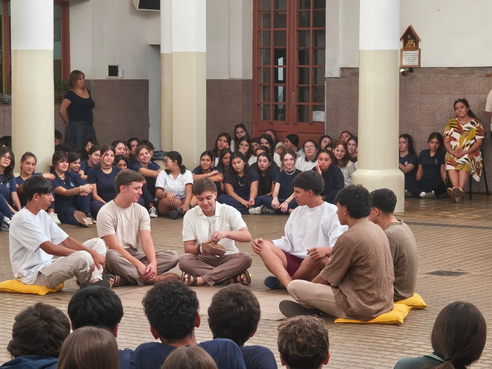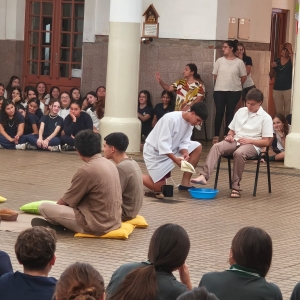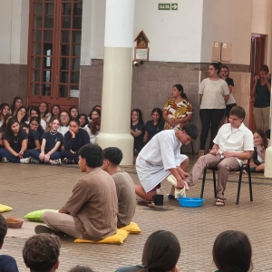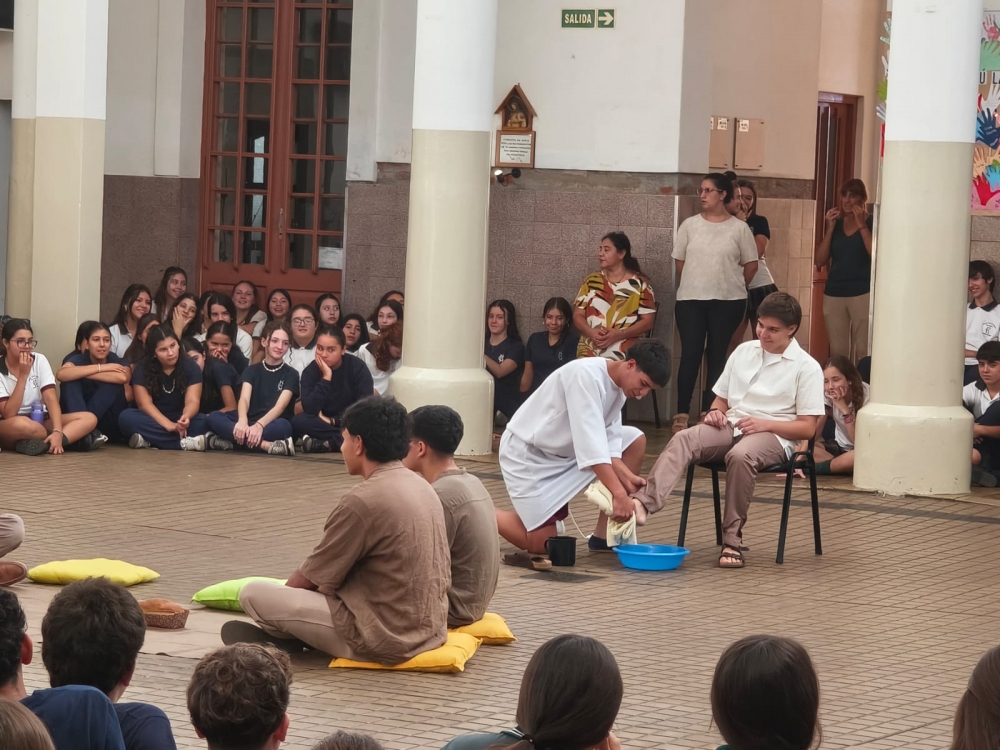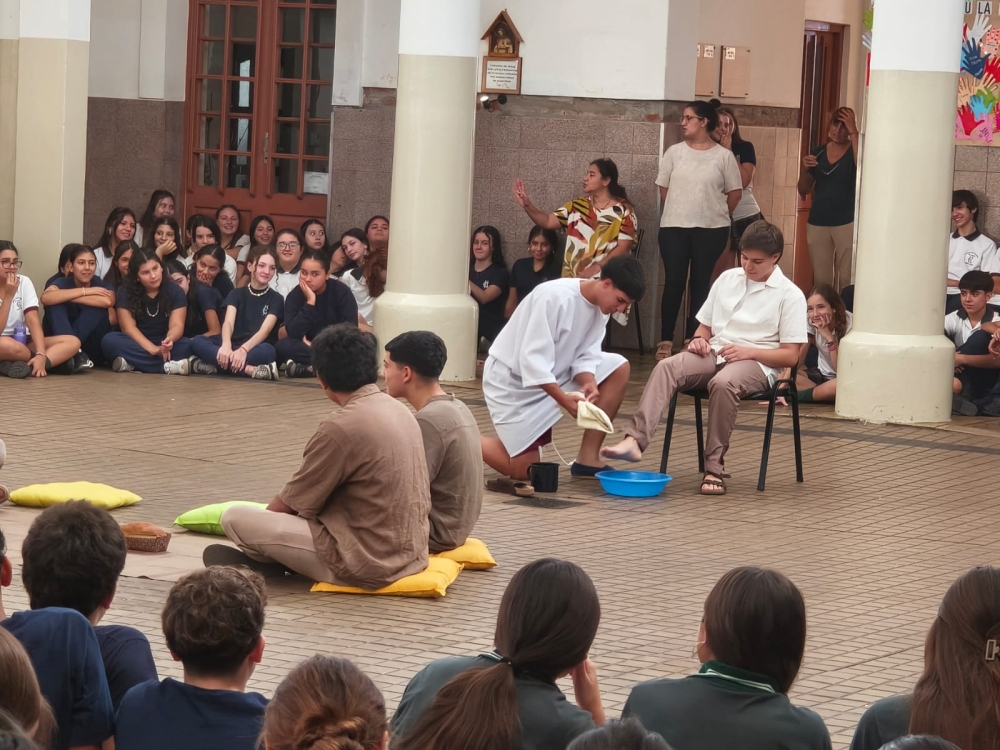 En la mañana del martes 31 de marzo, el Nivel Secundario el lavado de los pies y la institución de la Eucaristía dos gestos centrales del Jueves Santo.