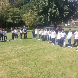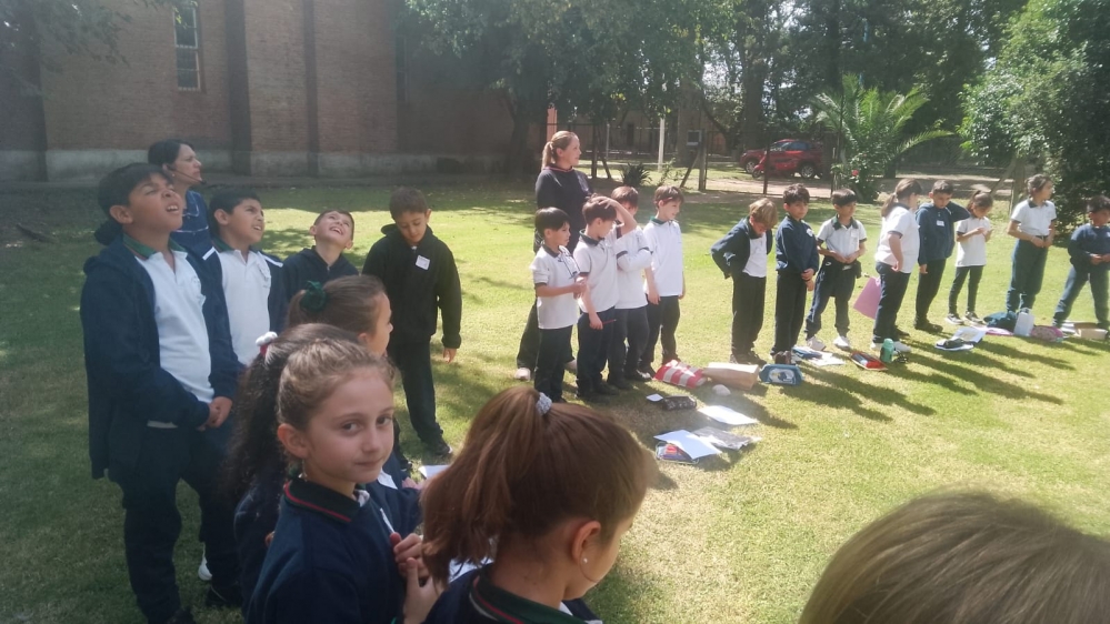 En la tarde del miércoles 9 de abril los alumnos de tercer grado A y B acompañados por sus docentes y dos madres participaron de la convivencia en la casa de Encuentro del lote XI de Colonia Caroya