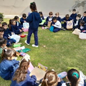 En la jornada del lunes 14 de abril los alumnos de primer grado A y B acompañados de sus docentes y algunas madres participaron de la convivencia en la casa del Encuentro. Lote XI de Colonia Caroya.