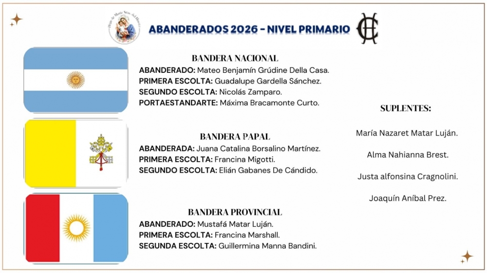 Por eso, el honor de portar nuestras banderas significa haber alcanzado el objetivo más profundo de la educación: crecer en conocimientos, en valores y en espíritu, reflejando la esperanza de un futuro mejor y las virtudes que nos inspiran a vivir en paz, solidaridad y fraternidad.