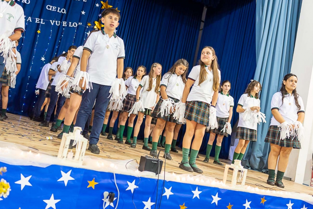 Hoy, en esta jornada tan especial, miramos hacia atrás y hacia arriba al mismo tiempo. Hacia atrás, para reconocer el camino recorrido: un año tejido con aprendizajes, tropiezos, desafíos, miradas cómplices y risas que quedaron flotando en el aire del aula. Y hacia arriba, para descubrir que cada paso, cada intento, encendió una pequeña luz que ahora forma parte de nuestro propio cielo. Porque ser parte de sexto es eso: buscar estrellas nuevas, pero también aprender a despedir algunas, sabiendo que su brillo queda para siempre en la memoria.